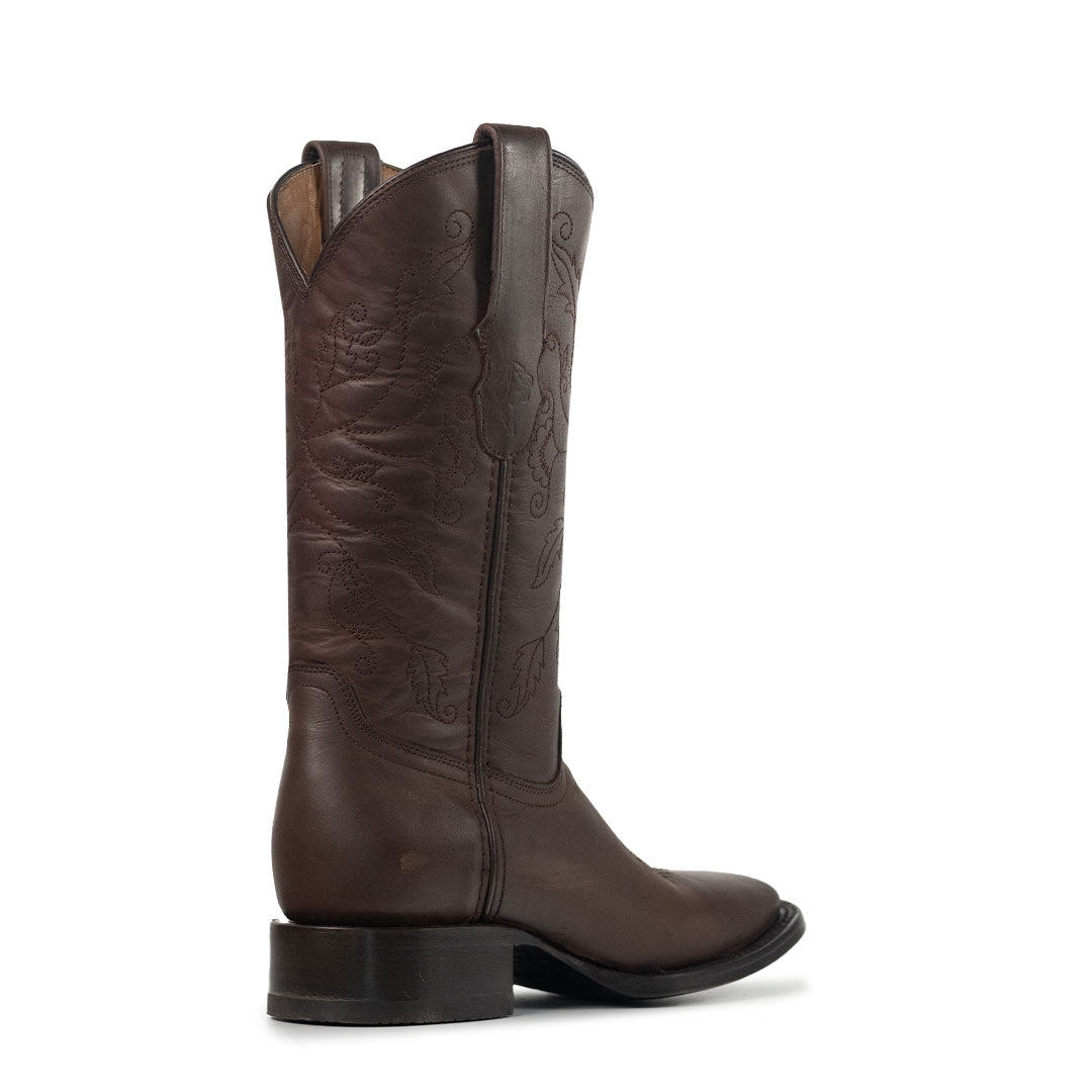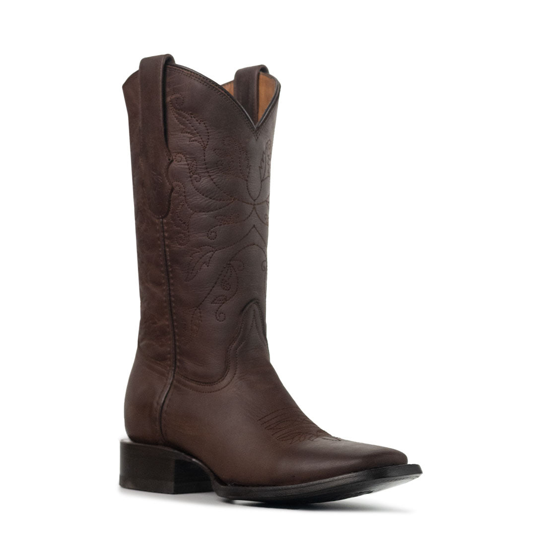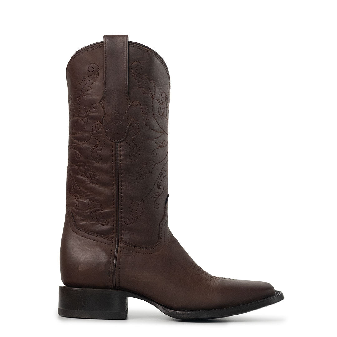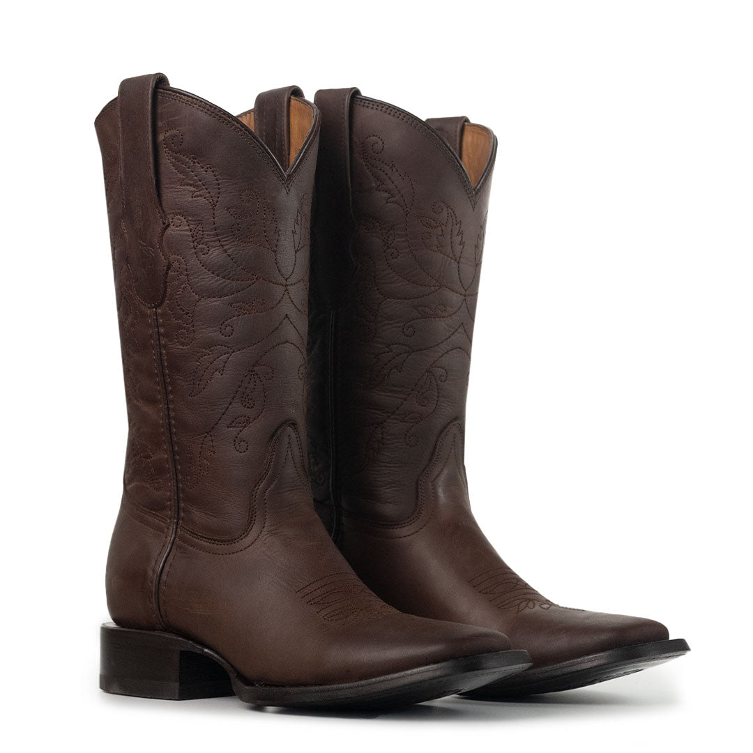 Elegancia y resistencia se combinan en la bota Aura Potrillo, en tono chedrón, elaborada con piel de res de alta calidad. Su horma Rodeo proporciona una estructura segura que estiliza y abraza el pie con firmeza.