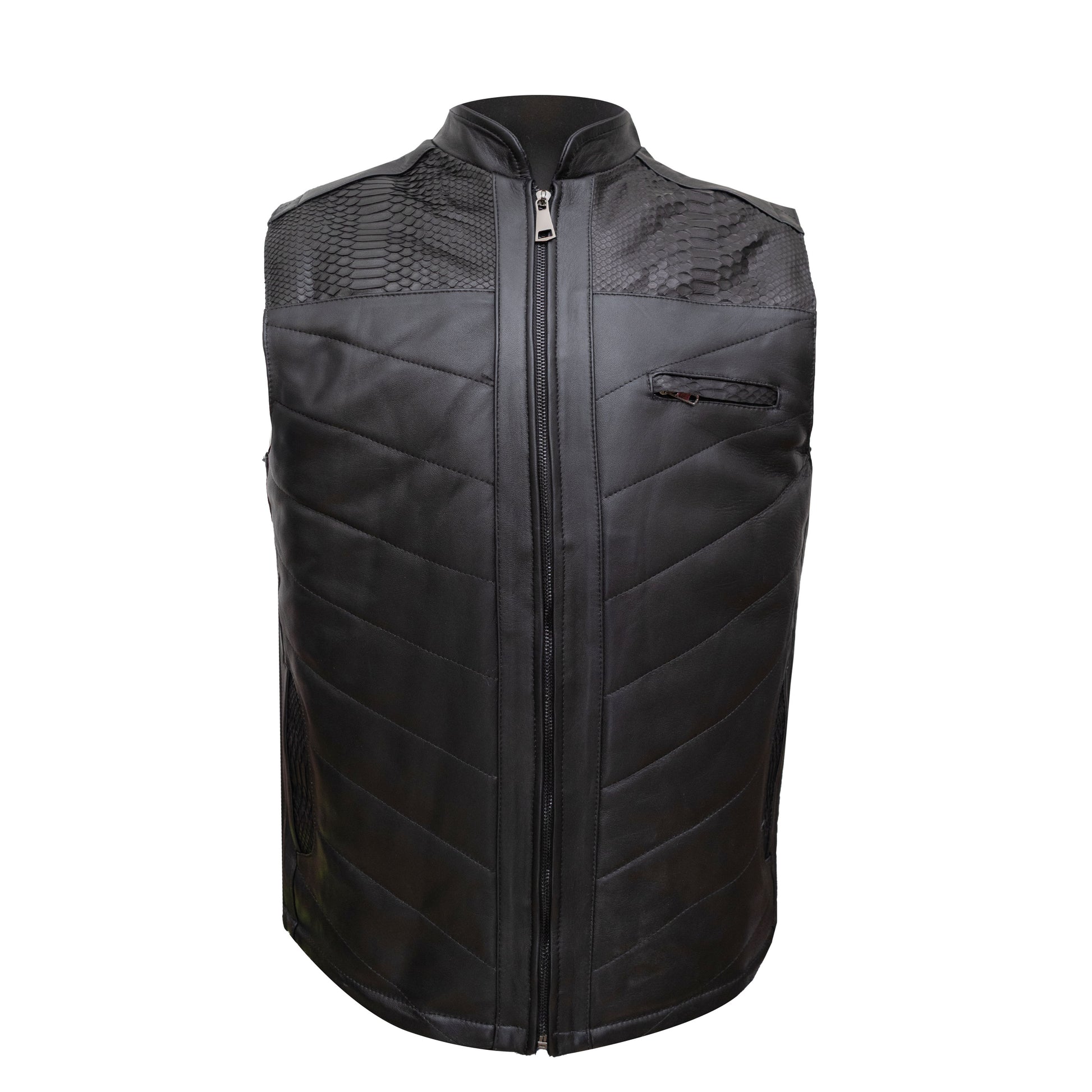 Nuestro chaleco con aplicaciones genuinas de piel de pitón combina elegancia salvaje con diseño atemporal. Una prenda pensada para quienes valoran los materiales exóticos y el estilo que deja huella.