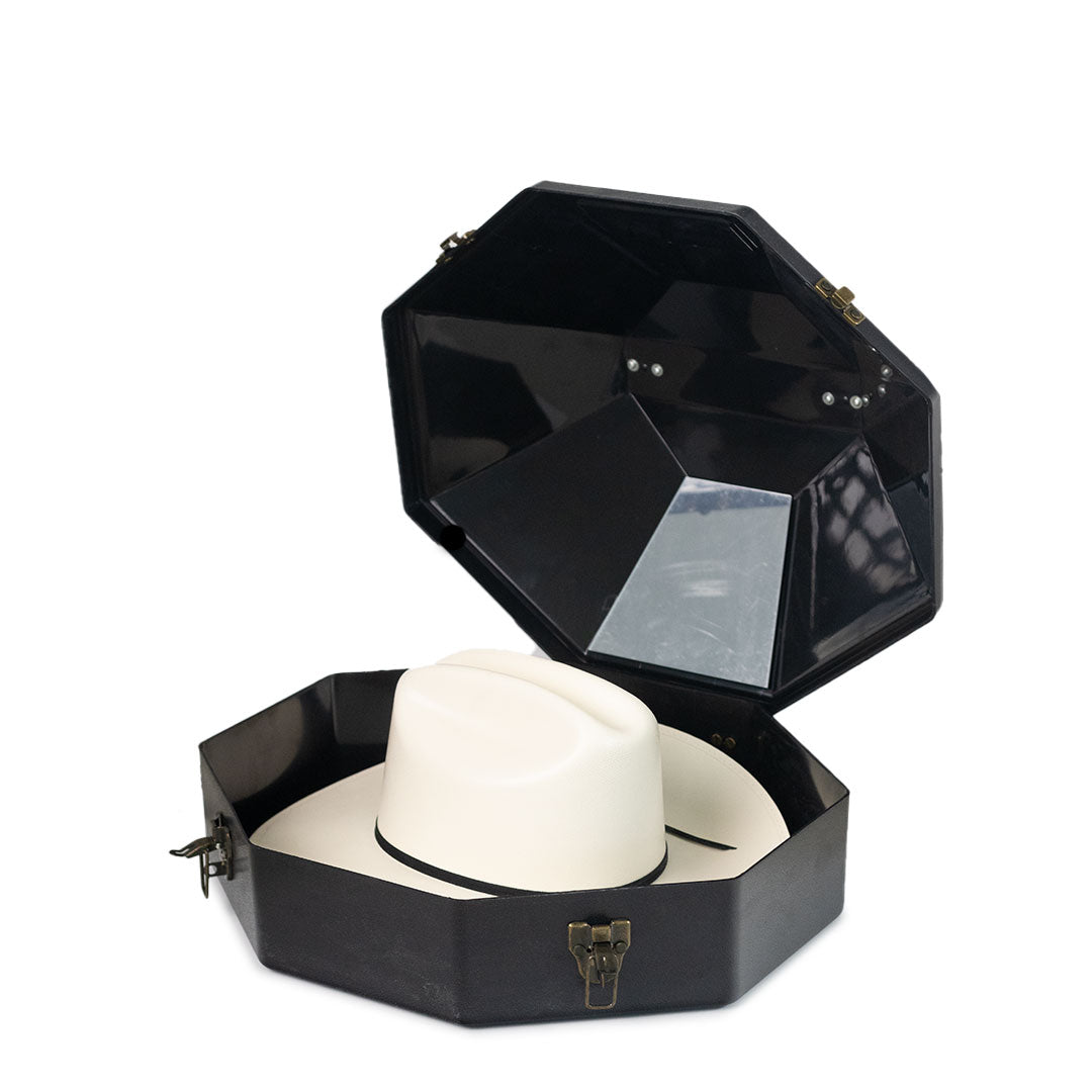 Protege tu estilo con el Estuche PortaSombrero en color negro. Su diseño rígido y elegante asegura la integridad de tu sombrero dondequiera que vayas.