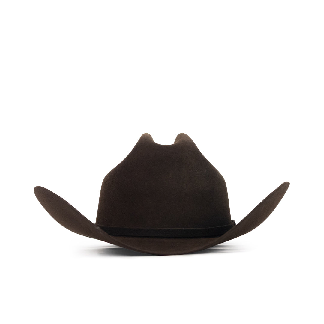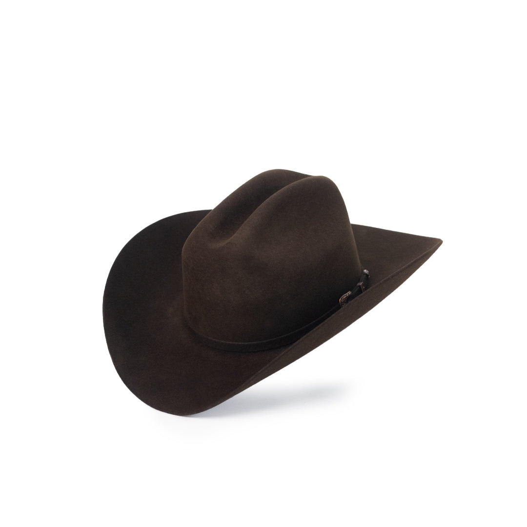 El Rancher Chocolate combina un diseño elegante con materiales de alta calidad. Elaborado con lana Merino y Angora, este sombrero 8X es perfecto para quienes valoran el lujo con estilo western.