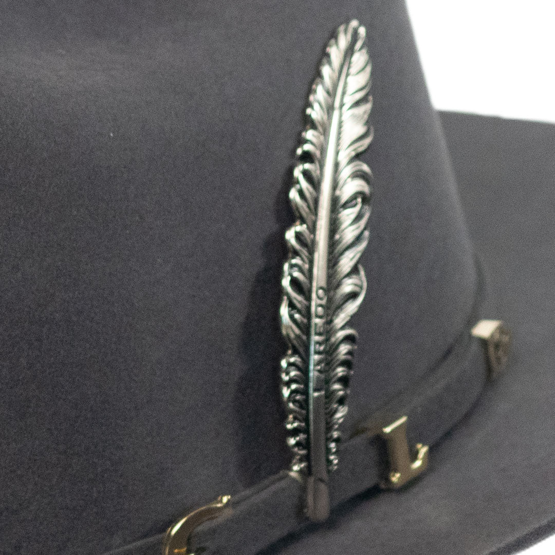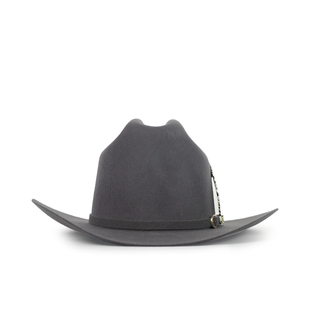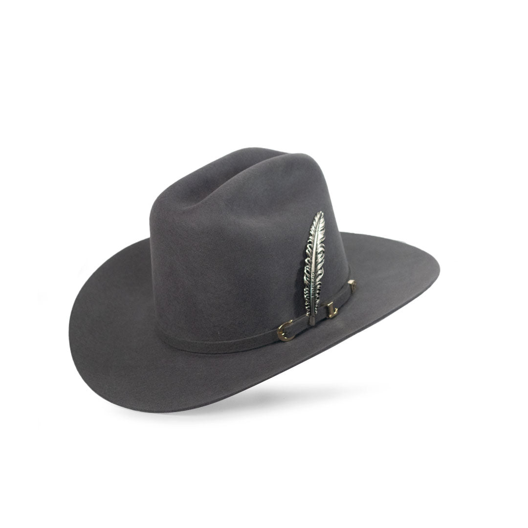 Da un paso seguro y con estilo con la Texana Carin León en color gris, elaborada con lana de excelente calidad. Su diseño unisex y el toque de distinción con cubrepolvo y pluma de alpaca la convierten en una pieza única y versátil, perfecta para cualquier ocasión.
